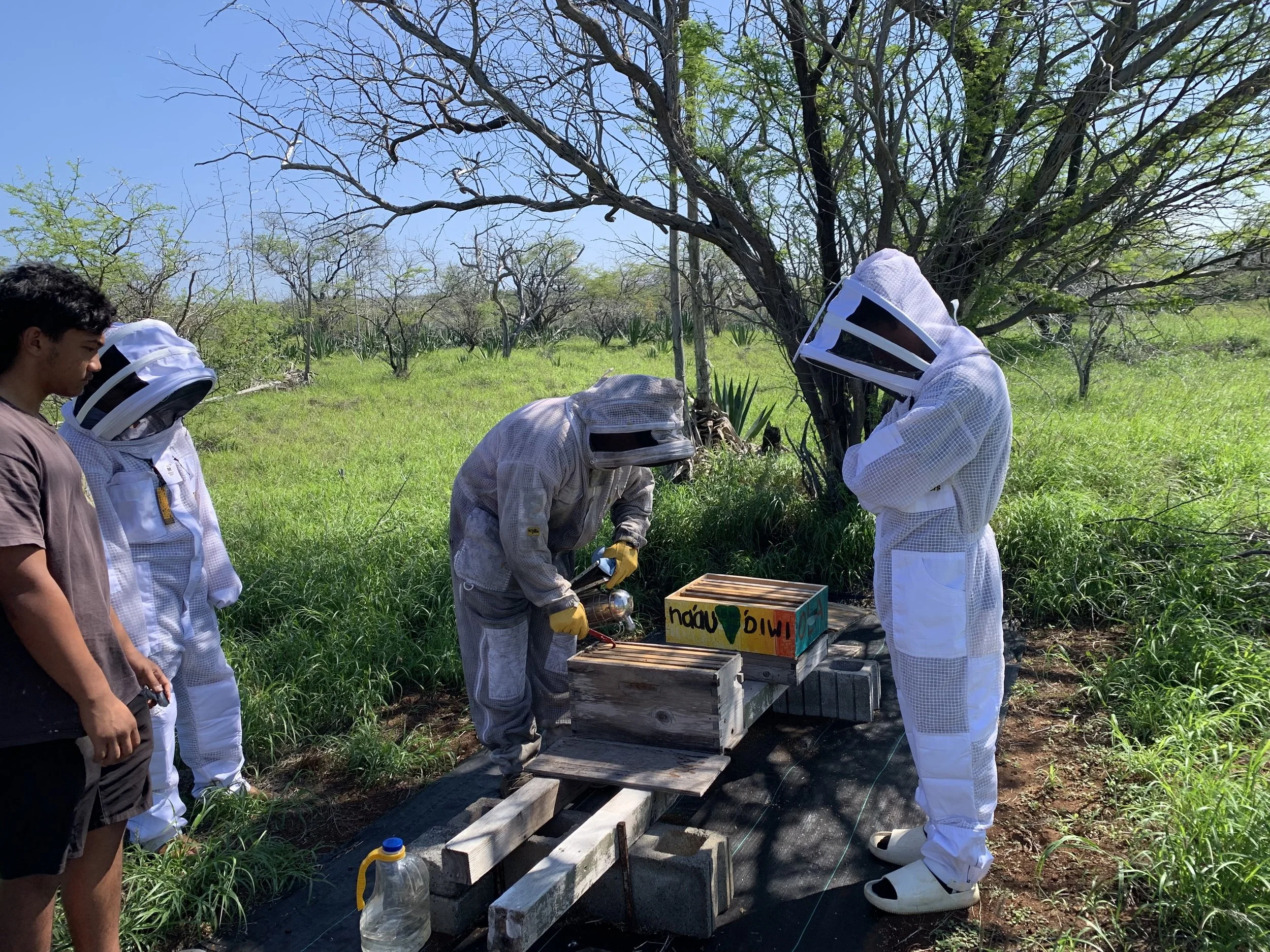 Naʻau ʻŌiwi students surveying bee hives at Māhukona.