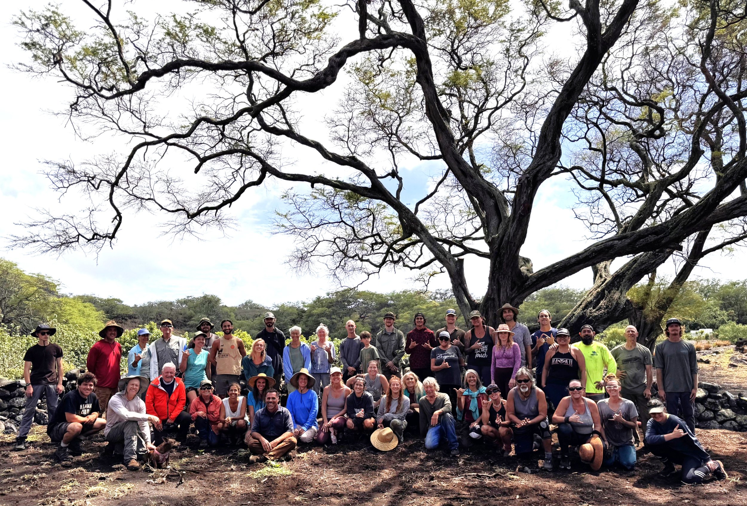 On a recent volunteer day, the group planted 15 to 20 Hala trees, Kukui, and Kou. The group ends their day with lunch, which some volunteers eat by the ocean, while others lower their tailgates for a makeshift dining room. Lastly, Scott takes a group photo, which reinforces camaraderie and the genuine pride that the volunteers have for their accomplishments.
