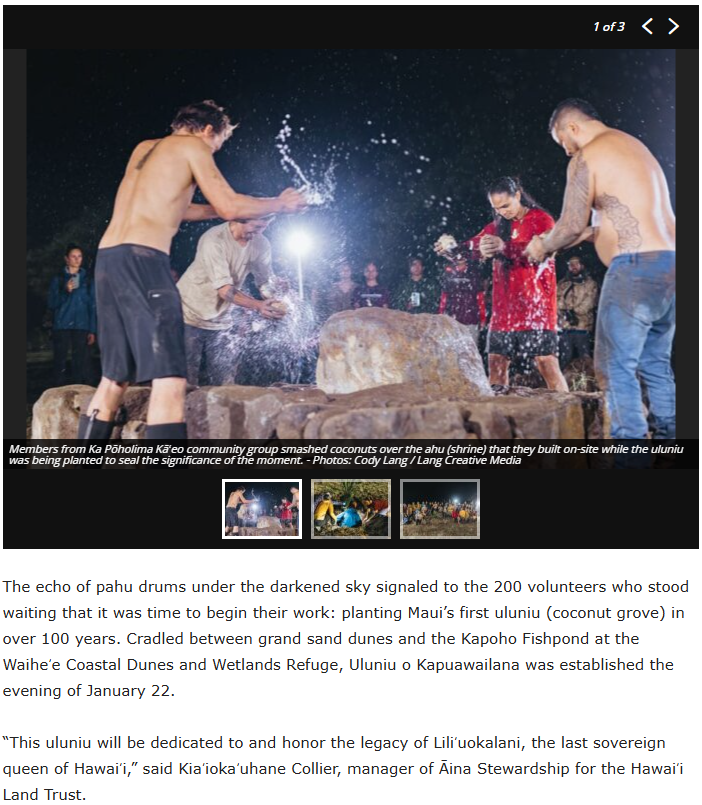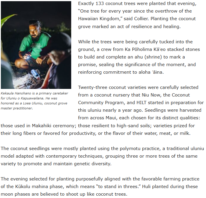 KA WAI OLA: The First Coconut Grove Planted on Maui in Over 100 Years Mar 1 Written By Madi Masek Read the article at Ka Wai Ola Madi Masek