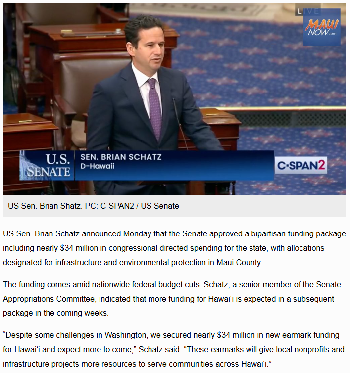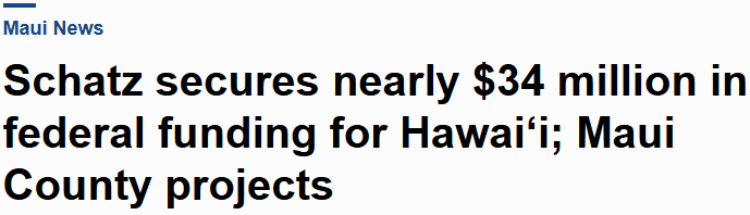 MAUI NEWS NOW: Schatz secures nearly $34 million in federal funding for Hawaiʻi; Maui County projects Jan 19 Written By Madi Masek Read the article at Maui News Now Madi Masek