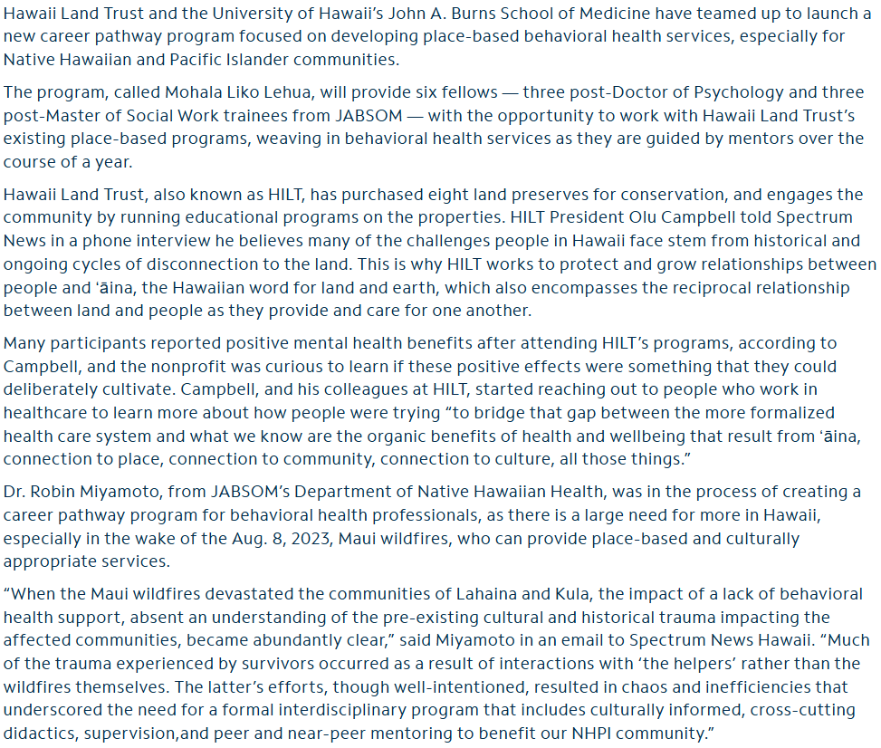 SPECTRUM NEWS 13: Career pathway program brings together nature and mental health services Sep 24 Written By Madi Masek Read the article at Spectrum News 13 Madi Masek